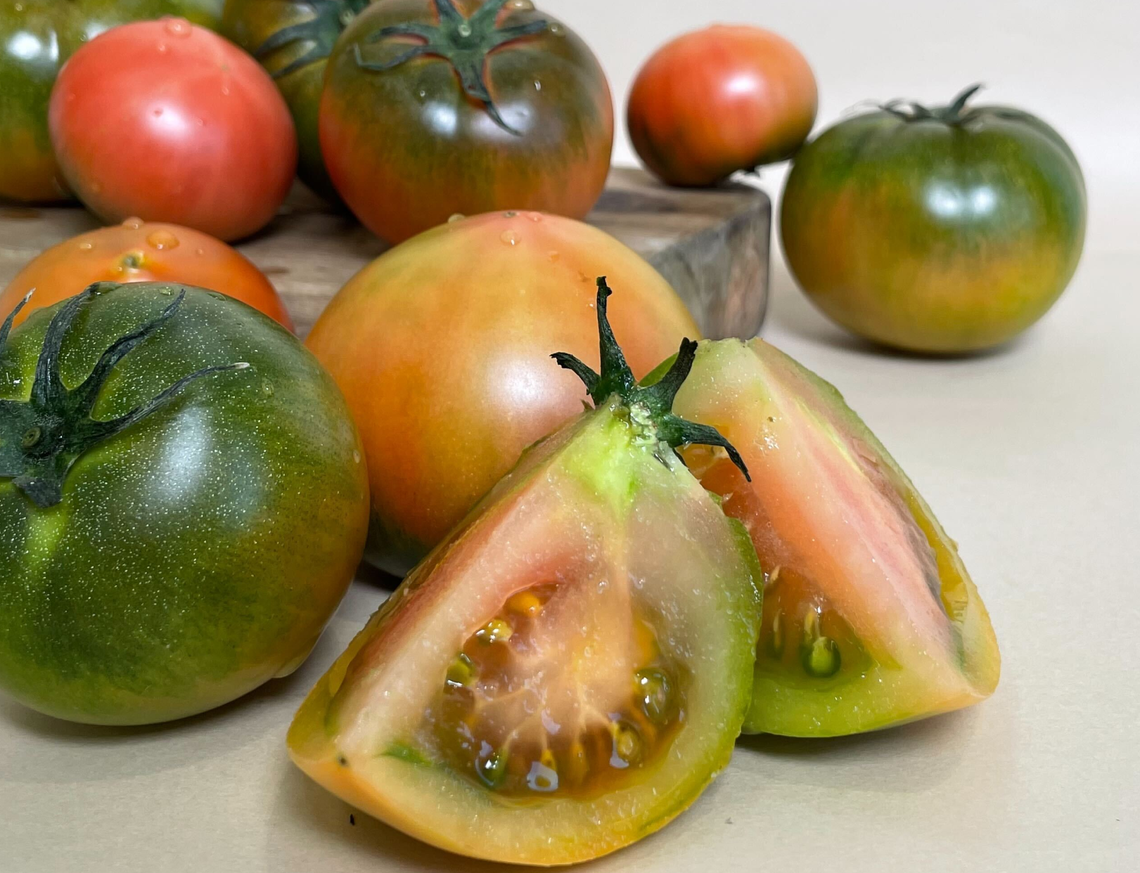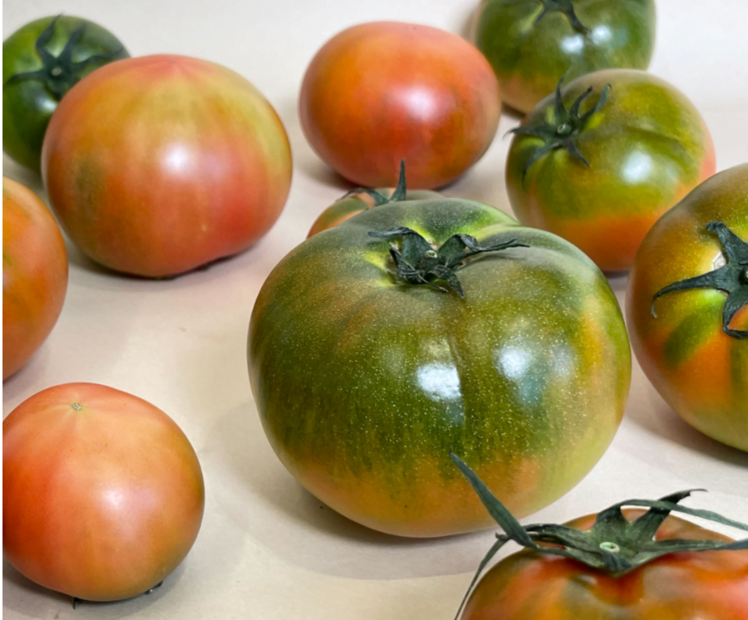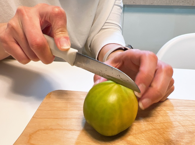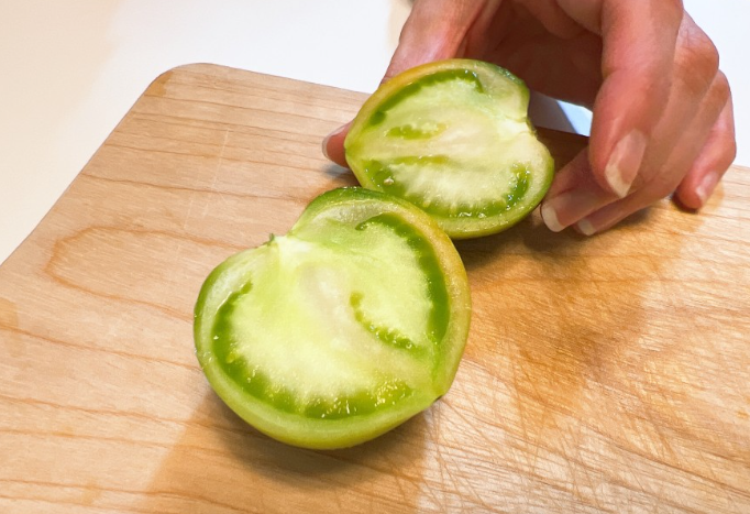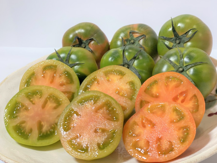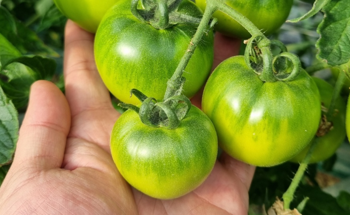 초록색을 띄고 있을 때 재배하기 때문에 잘 모르시는 분들은 안 익은 토마토라고 생각하실 수 있는데 대저 토마토는 이렇게 초록색일 때 재배해서 택배로 받으면 2~3일 사이에 후숙이 되면서 당도가 훨씬 높아져요. 그리고 과육도 좀 더 부드러워지죠.
